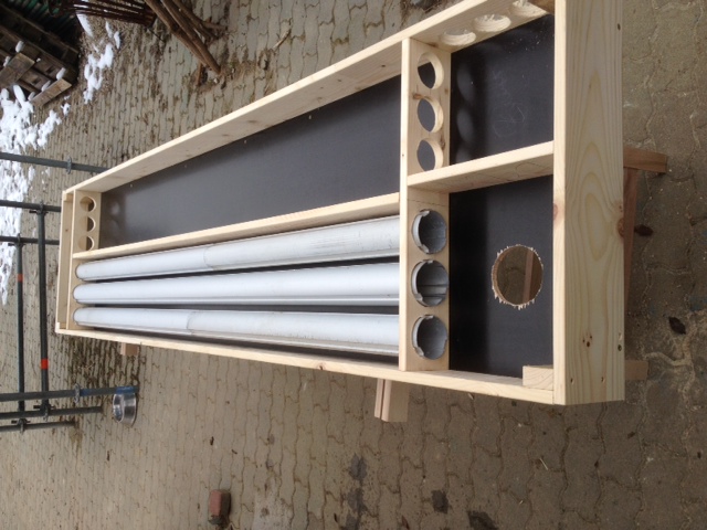 Glas: Mein Eigenbau hat eine Doppelstegplatte erhalten, sie stammte von einem Gewächshaus. Diese Platten sollen die Eigenschaft besitzen, die Sonnenstrahlung in der Hauptsache nur in einer Richtung durchzulassen, es soll wenig wieder nach Außen zurückkommen.