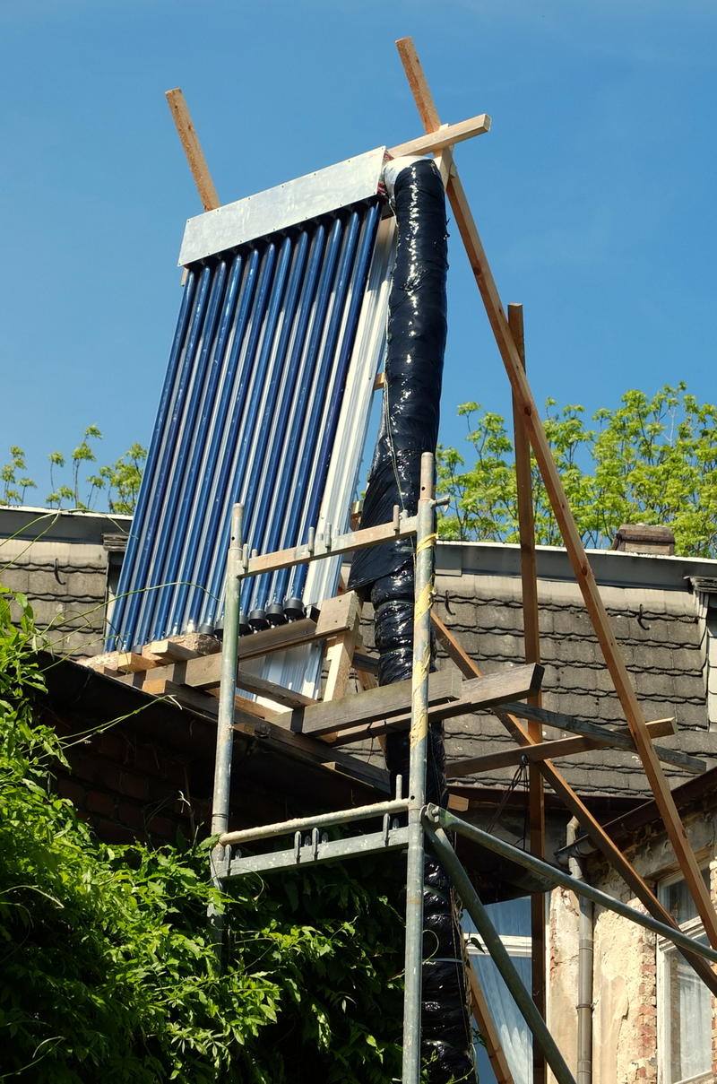 Hallo, ist das ein Provisorium, die auf den Bildern gezeigte Montage des Röhrenkollektors? Wie bekommst du das windfest?