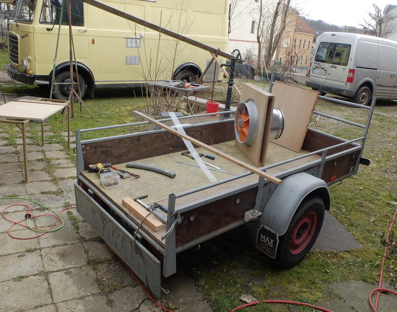 Also: ein Lebenszeichen meinerseits. es wird an allen Enden konkreter. Es entstehen drei verschiedene Projekte gleichzeitig. 1. Im WC Bad Waschraum Bereich wird die bestehende Lüftung mit Wärmetauscher Register an einen isolierten Schlauch angeschlossen. Der endet in einem Versuchskasten auf dem Carport Dach. 1. Variante: die (von mir) denkbar einfachste Bauweise zuerst: ein 250x 125 OSB Brett wird mit schwarzer stretch Folie umwickelt. Längst kommen ca 4 Dachlatten drauf. Dann das Ganze mit transparenter stretch Folie umwickeln und fertig ist der Kollektor... erwarteter Effekt: Bad wird mit warmer/ heisser Frischluft gelüftet.