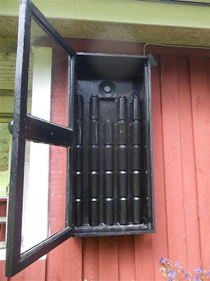 Falls ich noch mal einen baue, dann werde ich entweder wieder dunkles Alunetz oder sogar Glasfieber oder einfach ein schwarzes Filztuch nehmen. Mit Tuch kann man das Dingen nämlich recht flach halten! Allerdings geht dann die Verwirbelund der Luft verloren...